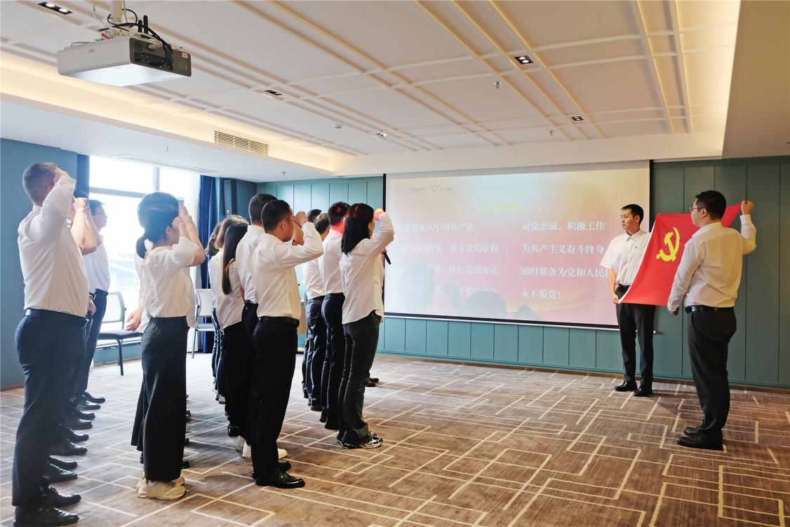 會議最后,全體黨員面向黨旗舉起右手莊嚴宣誓,重溫入黨誓詞。