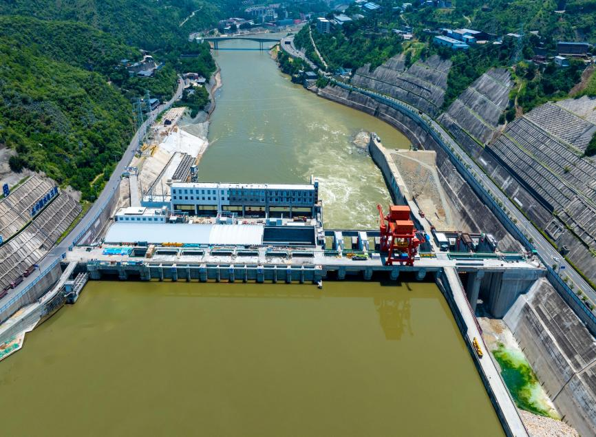 項目裝機39萬千瓦,最大壩高73米,總投資60.27億元。目前大壩廠房工程全線澆筑到頂,1~3號機組已投產發電,攔污柵、進口檢修門、尾水事故檢修門已完成安裝,1~6號弧形工作門已完成安裝,正在推進4號機組無水調試以及7號弧形工作門安裝工作。